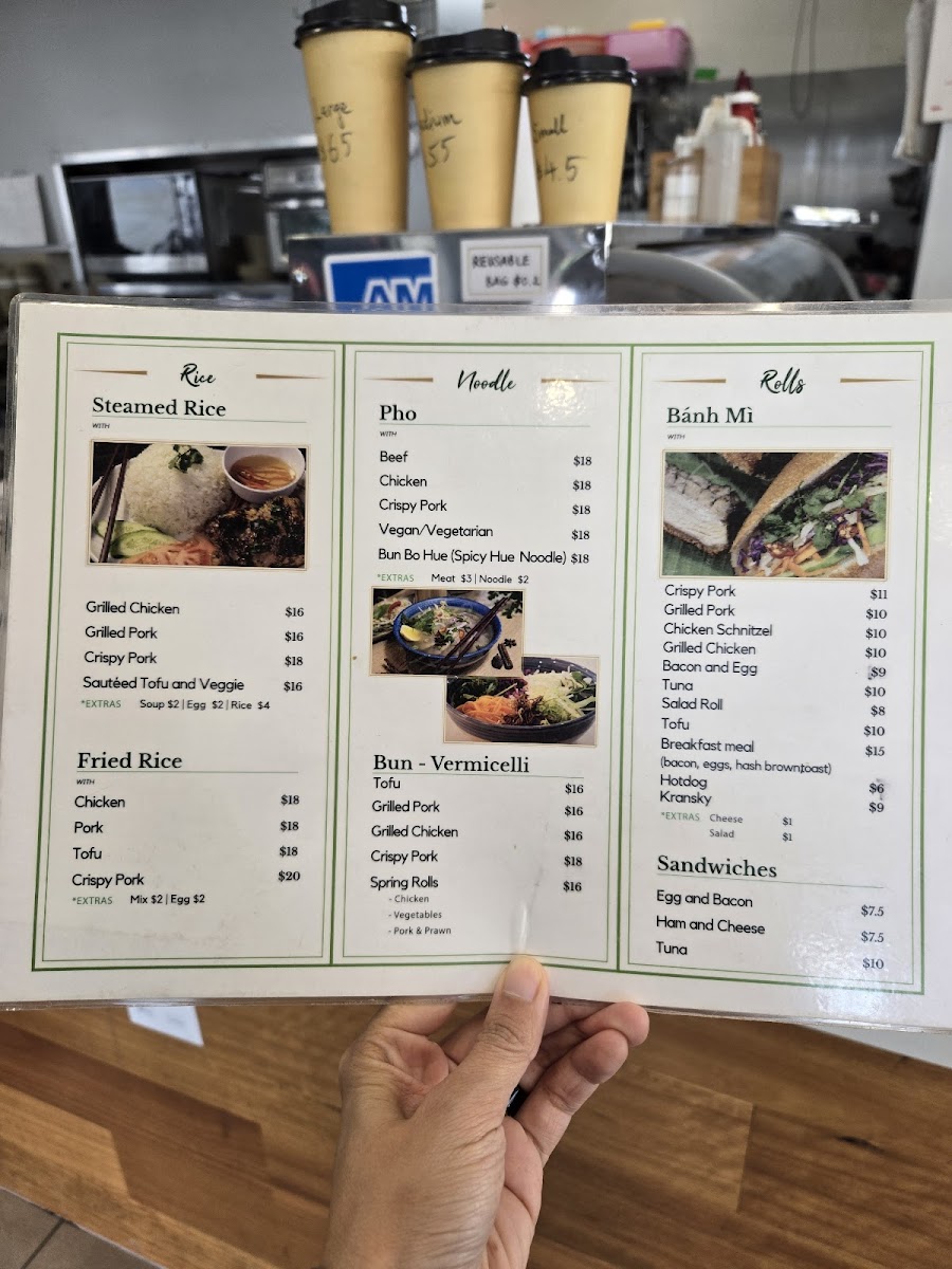 Popular choices like the warm, aromatic Vietnamese Beef Pho and the crispy Pork Banh Mi provide a taste of traditional flavors in a simple, inviting format. Fresh spring rolls and grilled rice paper rolls offer lighter options that pair well with freshly made juices or robust Vietnamese iced coffee, blending seamlessly with the welcoming atmosphere of the space.